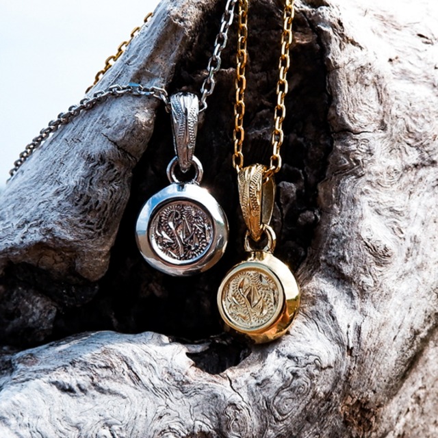 職人による繊細なスクロールカービングが特徴的。 スクロール・ナル【波】 『永遠の愛』・『目標を乗り越える』などの意味合いがあり、ペアネックレス・プレゼント用としても最適です。 素材 サージカルステンレススチール316L サイズ コイン直径:約11.0mm全縦:約18.0mm チェーンサイズ長さ:約40+5cm (45+5cmご希望の場合は備考欄にてお伝えください) カラー ゴールド/シルバー